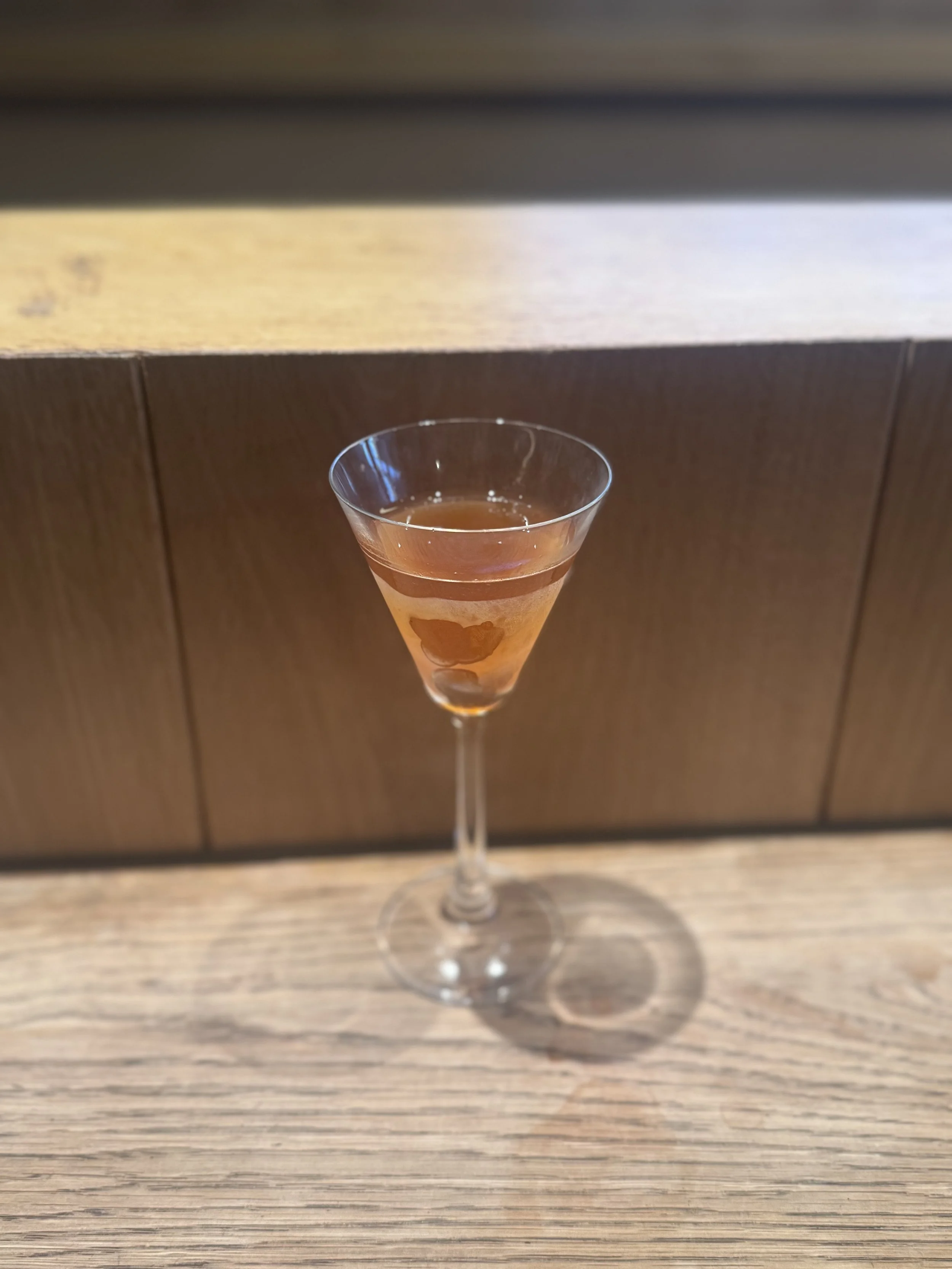 Note: you'll see "viscous" as a mouthfeel note repeated quite often; that refers to all cocktails that are pre batched and served from the freezer. The liquid here sits on a fine threshold between fluid and frozen, making the drink feeling extremely cold and dense, almost syrupy-like. We put a lot on effort for our cocktails to reach this specific moutfeel.