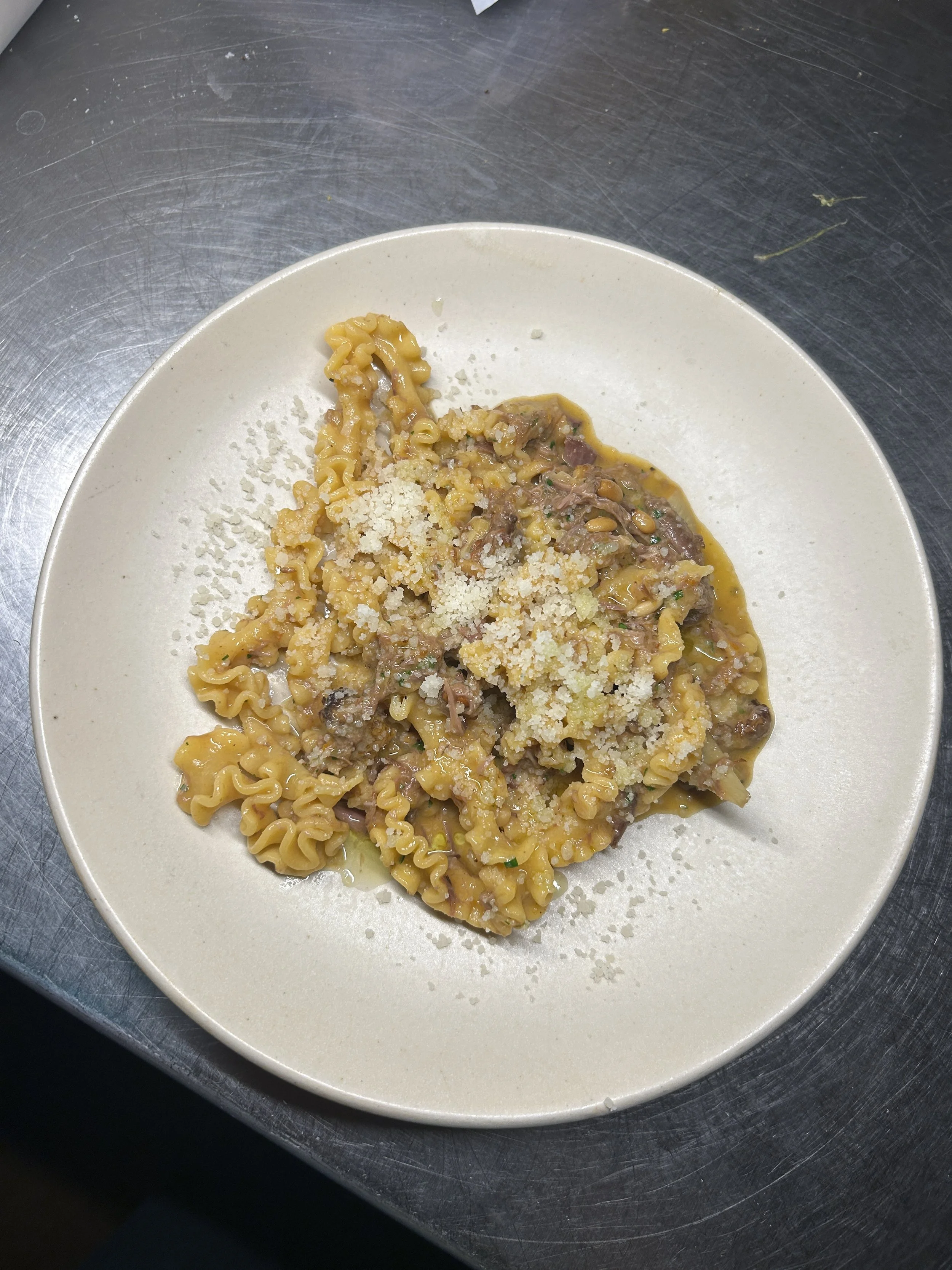 a Ragu made out the neck, shins, bits & bobs from the whole carcass of the hogget. the ragu contains anchovies.